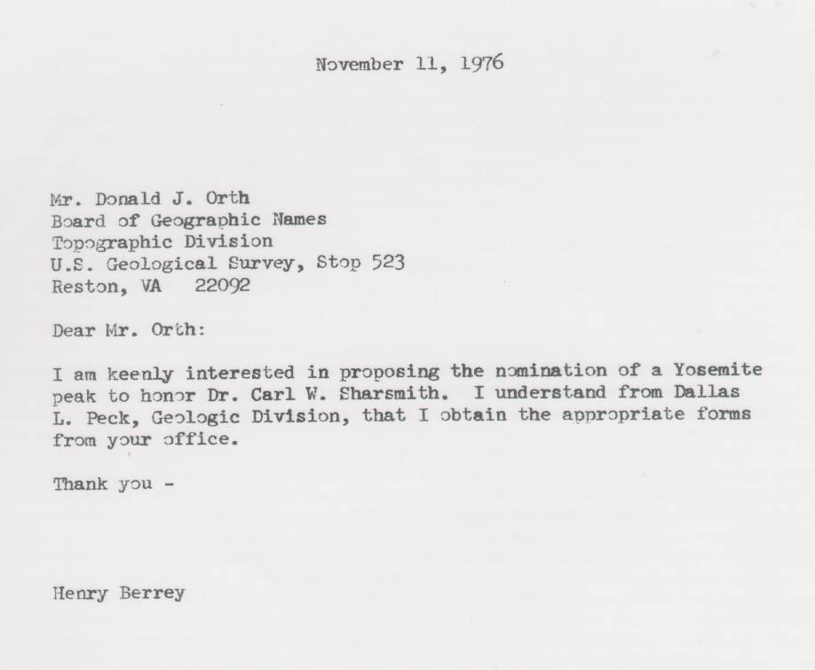 Home & Synopsis/Status Reports Purpose & Method Who was Carl Sharsmith? Why name a Yosemite feature for Carl?/Origin of Proposal Which feature should be named for Carl? How can a feature be named for Carl? SUMMARY OF SUPPORTING STATEMENTS Contacts/Resources Webmaster Search Form