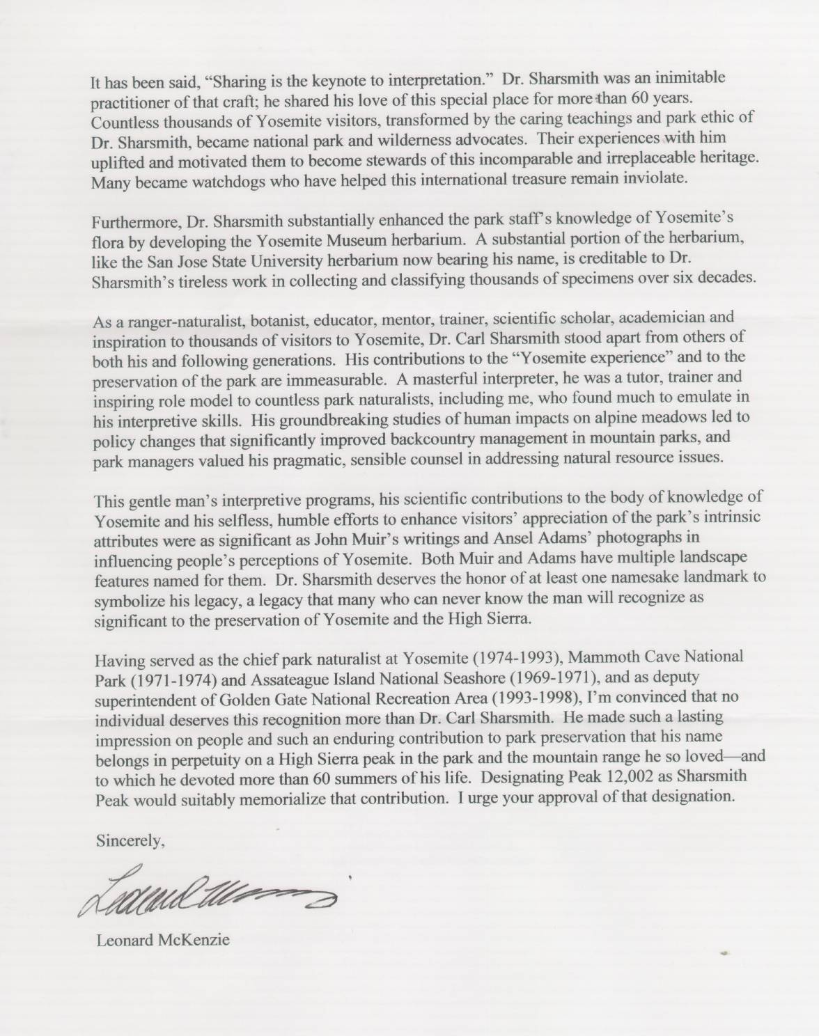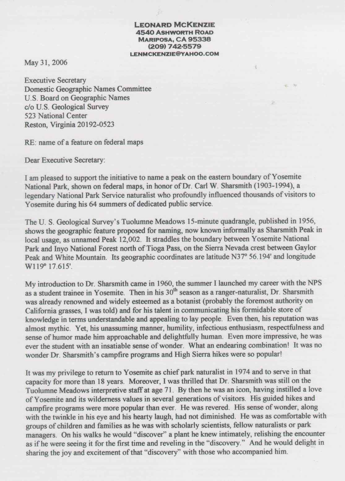 Home & Synopsis/Status Reports   Purpose & Method  Who was Carl Sharsmith?  Why name a Yosemite feature for Carl?/Origin of Proposal   Which feature should be named for Carl?  How can a feature be named for Carl?  SUMMARY OF SUPPORTING STATEMENTS    Contacts/Resources Webmaster Search Form