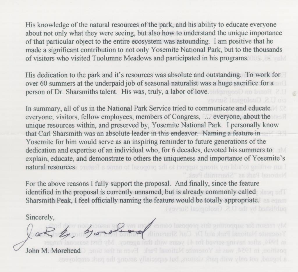 Home & Synopsis/Status Reports Purpose & Method Who was Carl Sharsmith? Why name a Yosemite feature for Carl?/Origin of Proposal Which feature should be named for Carl? How can a feature be named for Carl? SUMMARY OF SUPPORTING STATEMENTS Contacts/Resources Webmaster Search Form