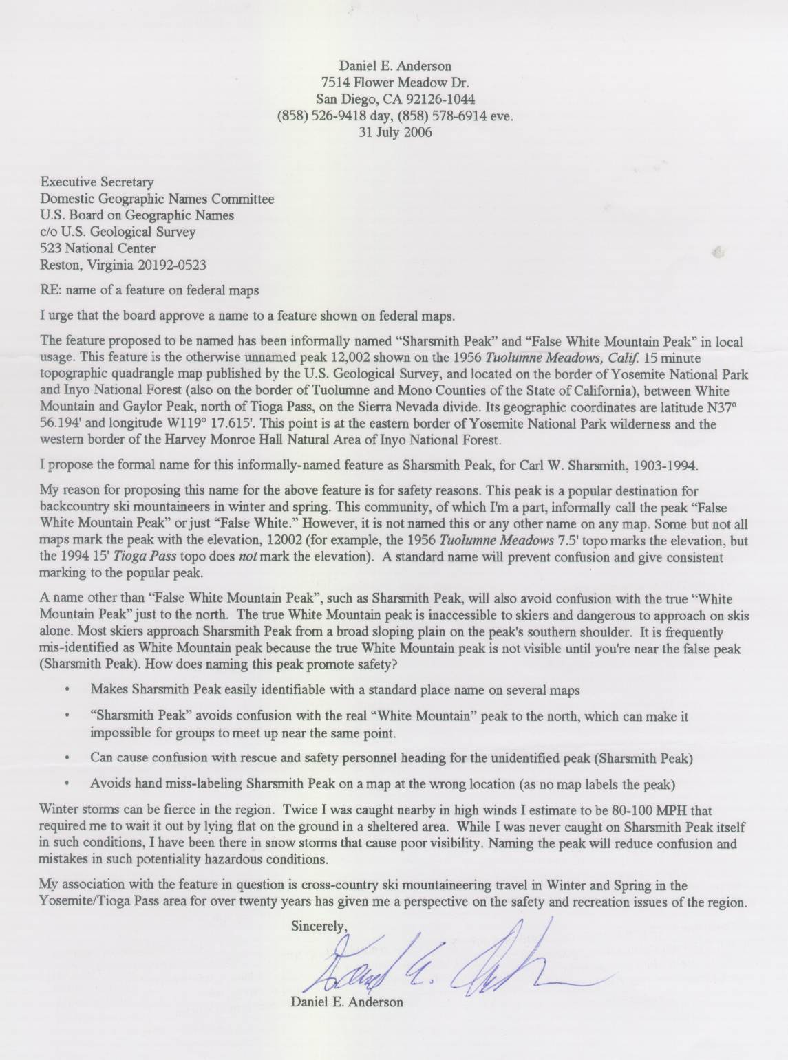 Home & Synopsis/Status Reports Purpose & Method Who was Carl Sharsmith? Why name a Yosemite feature for Carl?/Origin of Proposal Which feature should be named for Carl? How can a feature be named for Carl? SUMMARY OF SUPPORTING STATEMENTS Contacts/Resources Webmaster Search Form