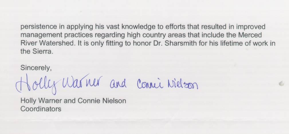 Home & Synopsis/Status Reports Purpose & Method Who was Carl Sharsmith? Why name a Yosemite feature for Carl?/Origin of Proposal Which feature should be named for Carl? How can a feature be named for Carl? SUMMARY OF SUPPORTING STATEMENTS Contacts/Resources Webmaster Search Form