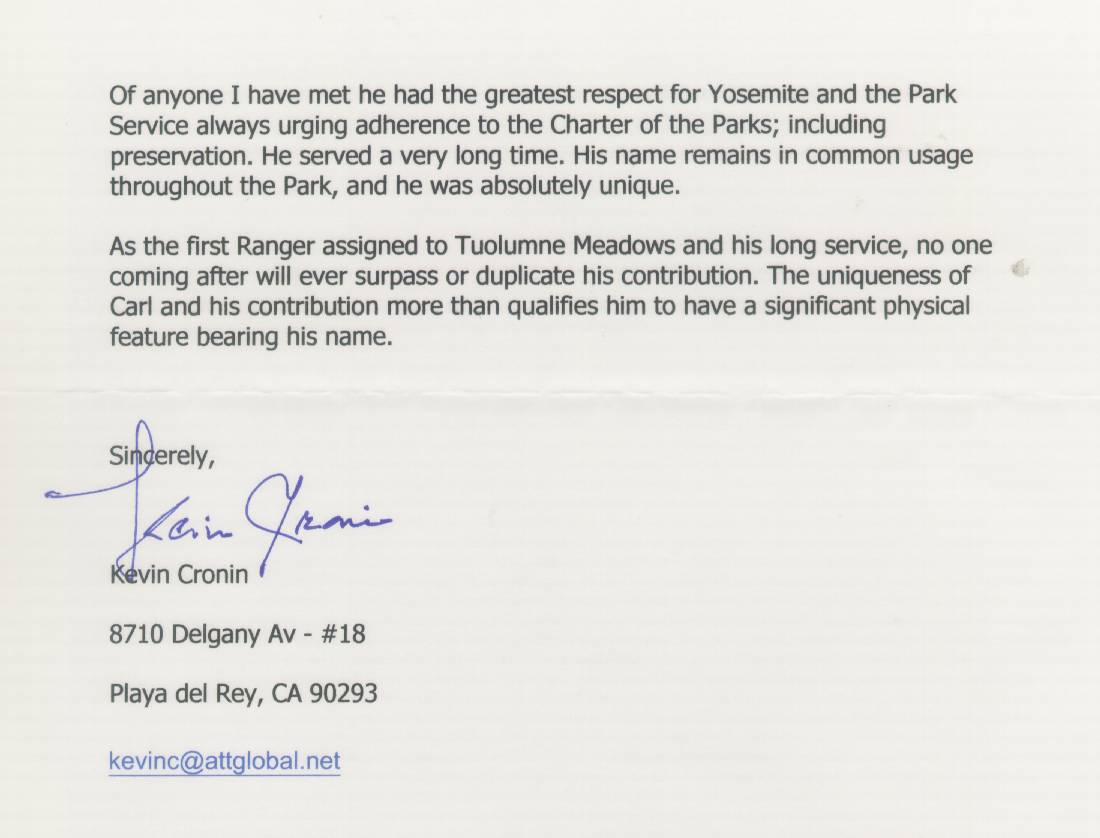 Home & Synopsis/Status Reports Purpose & Method Who was Carl Sharsmith? Why name a Yosemite feature for Carl?/Origin of Proposal Which feature should be named for Carl? How can a feature be named for Carl? SUMMARY OF SUPPORTING STATEMENTS Contacts/Resources Webmaster Search Form