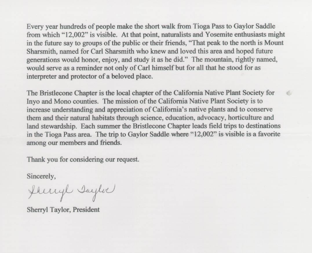 54) SUPPORTING STATEMENT OF CALIFORNIA NATIVE PLANT SOCIETY, BRISTLECONE CHAPTER