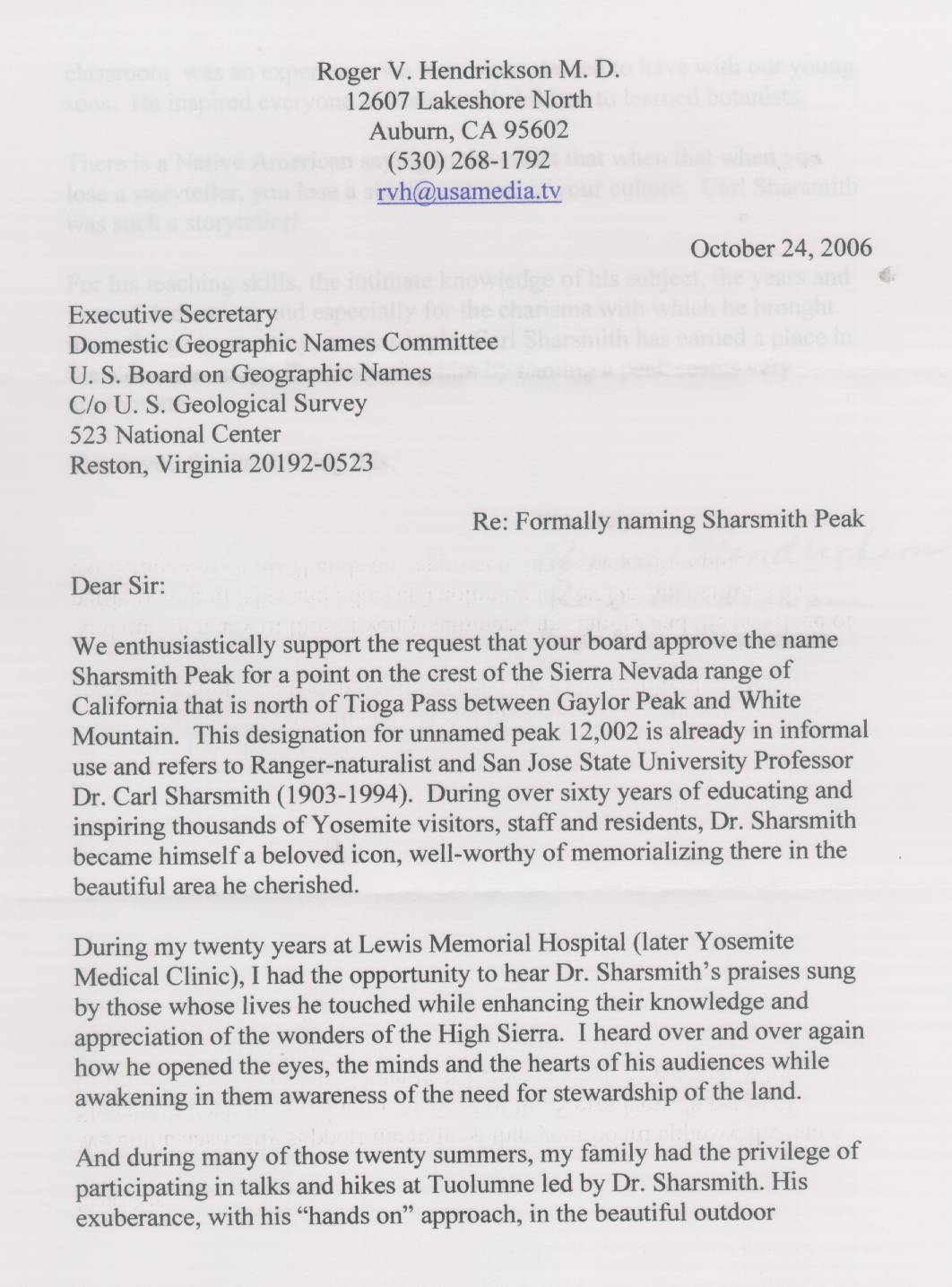 Home & Synopsis/Status Reports   Purpose & Method  Who was Carl Sharsmith?  Why name a Yosemite feature for Carl?/Origin of Proposal   Which feature should be named for Carl?   How can a feature be named for Carl?   SUMMARY OF SUPPORTING STATEMENTS    Contacts/Resources Webmaster Search Form