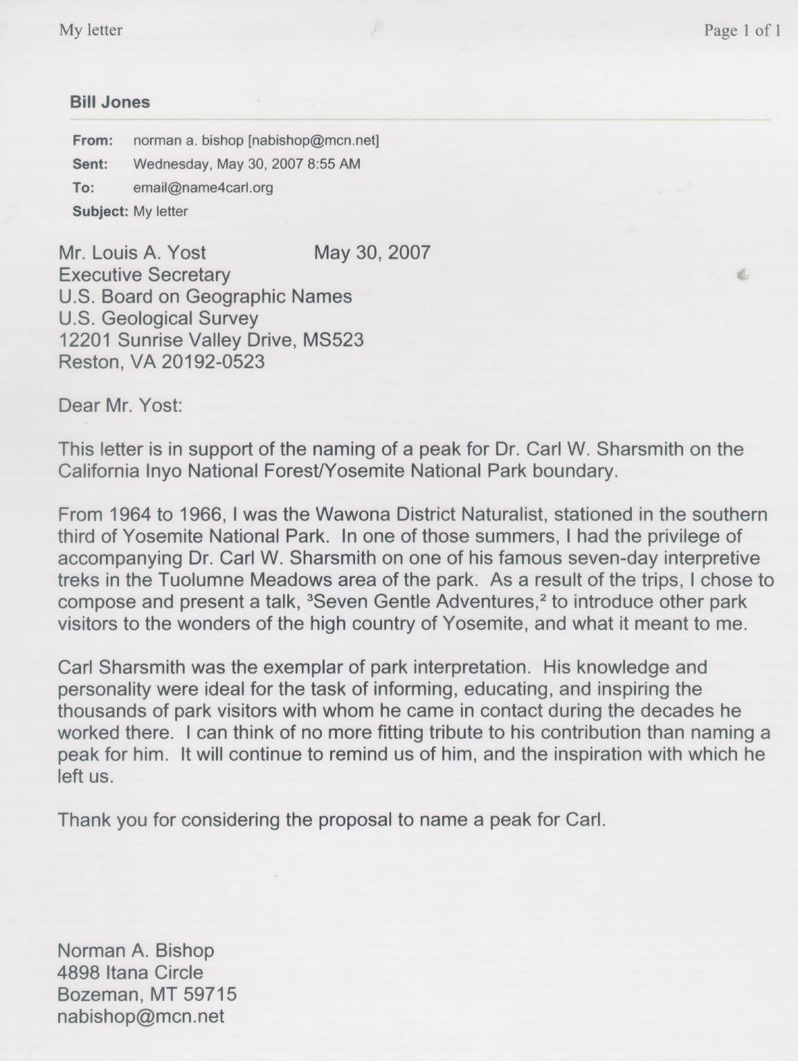 Home & Synopsis/Status Reports   Purpose & Method  Who was Carl Sharsmith?  Why name a Yosemite feature for Carl?/Origin of Proposal   Which feature should be named for Carl?   How can a feature be named for Carl?   SUMMARY OF SUPPORTING STATEMENTS   Contacts/Resources Webmaster Search Form