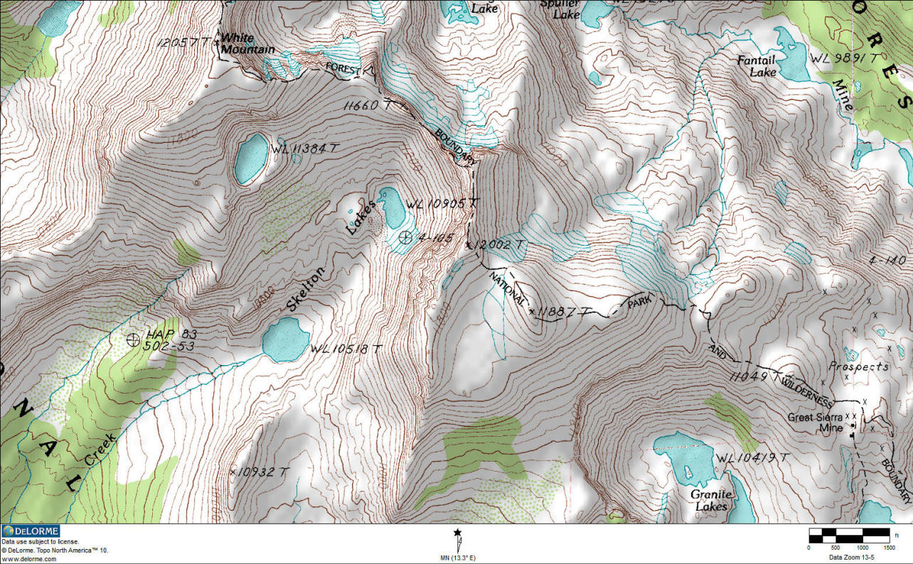 And another USGS topo map from DeLorme Topo, showing Peak 12002 (Sharsmith Peak) just above the map center: